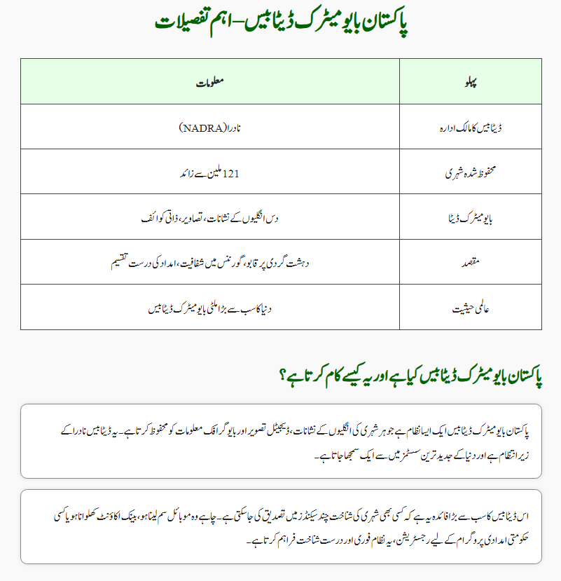 Thanks to this system, everything from SIM card registration to financial aid distribution is now possible with complete transparency. Managed by NADRA (National Database and Registration Authority), this database holds the fingerprints, photographs, and personal details of millions of Pakistanis.
