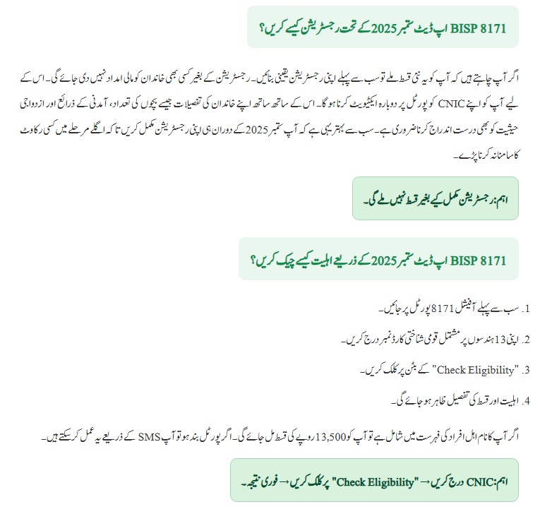 FAQs — BISP 8171 Update September 2025