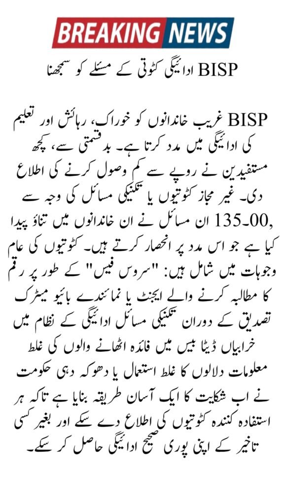 BISP helps poor families pay for food, shelter, and education. Unfortunately, some beneficiaries reported receiving less than Rs. 13,500 due to unauthorized deductions or technical issues. These problems have caused stress among families who rely on this support. Common reasons for deductions include: