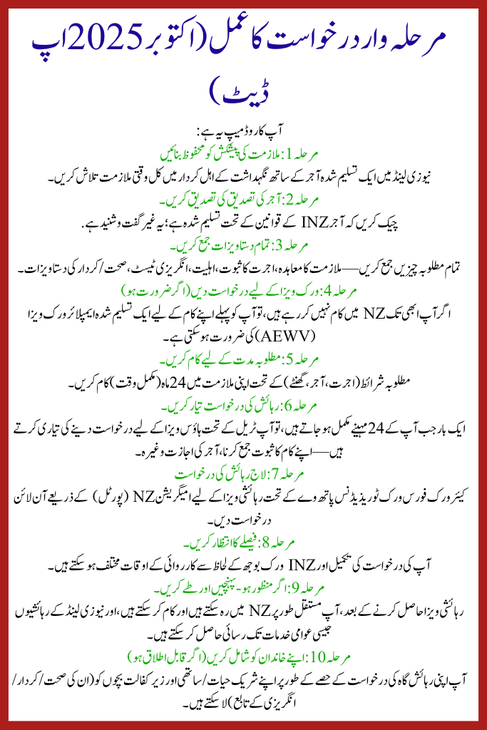 The Care Workforce Work to Residence Visa is a honest and valuable occasion for care specialists in Pakistan who want to migrate to New Zealand, work in high-demand roles (aged care, disability support, personal care) and ultimately settle. If you secure a full-time job offer from an accredited employer, ensure you encounter work/ wage/ boss/ hours requirements, gather all your documents, fulfil 24 months of full-time work, and formerly lodge your residence application—you could achieve permanent house in New Zealand. This article has given you all the ladders, criteria, documents and tips.