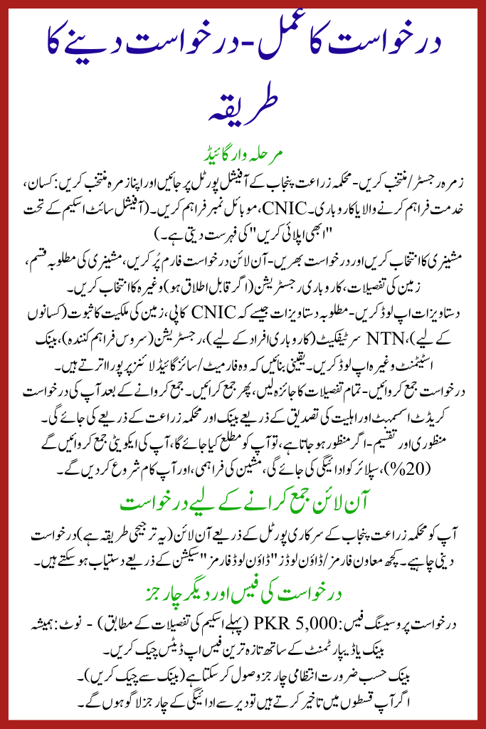 - For service providers: must be listed with the Agriculture Department (Field Wing), Government of Punjab.