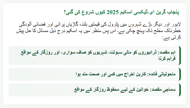 Cities like Lahore face high petrol costs, old and unsafe vehicles, and dangerous pollution levels. The Eligibility Criteria for Punjab Green E-Taxi Scheme 2026 aims to fix these issues by introducing electric taxis that are cleaner, cheaper, and safer. At the same time, it provides job opportunities for unemployed youth and women, helping them build stable careers while reducing environmental damage.