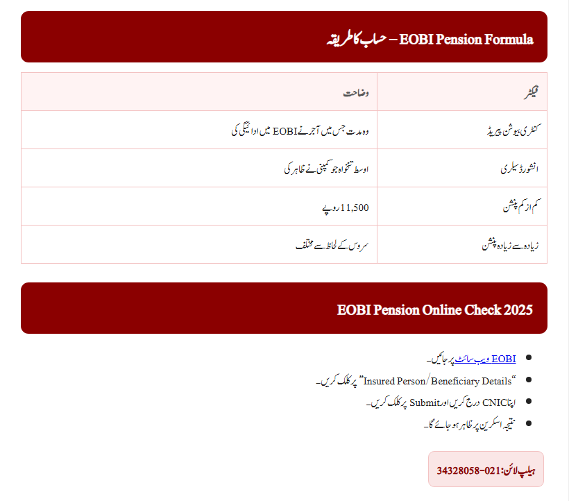 If you face any issues, you can call the EOBI helpline at 021-34328058 or visit your nearest EOBI regional office.