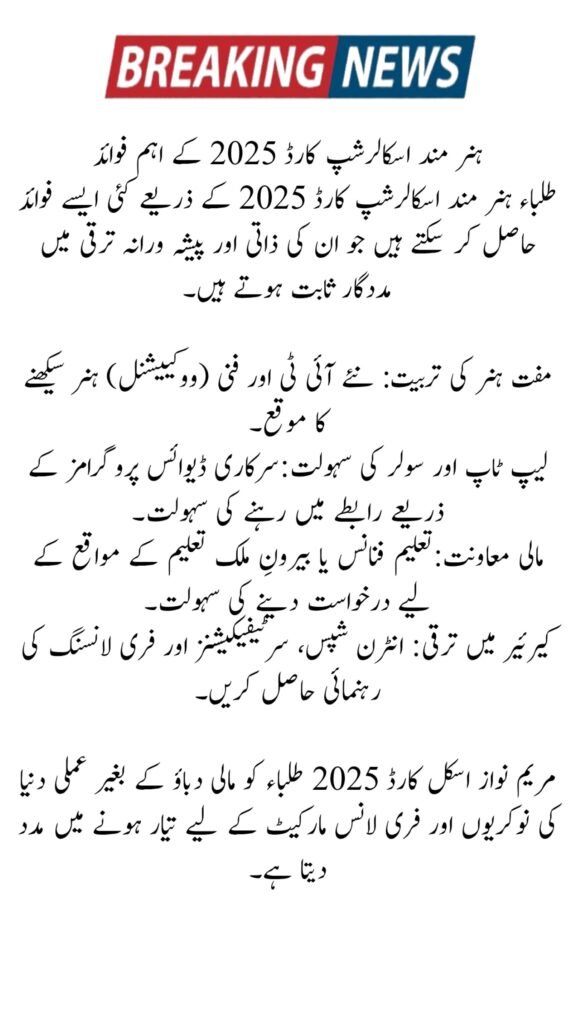 Main Benefits of Hunarmand Scholarship Card 2025