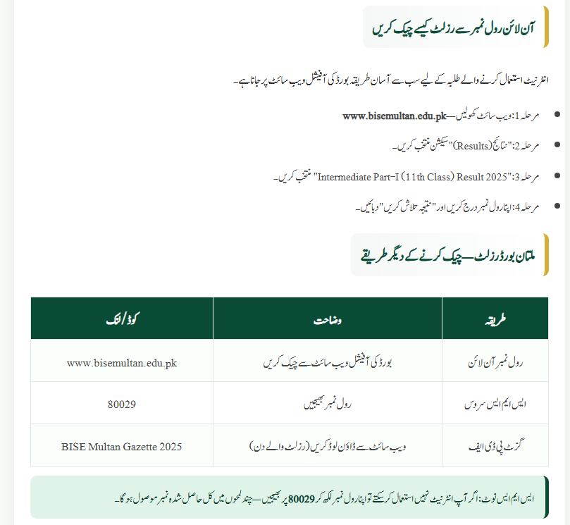 How to Check Multan Board 11th Class Result 2025 by SMS