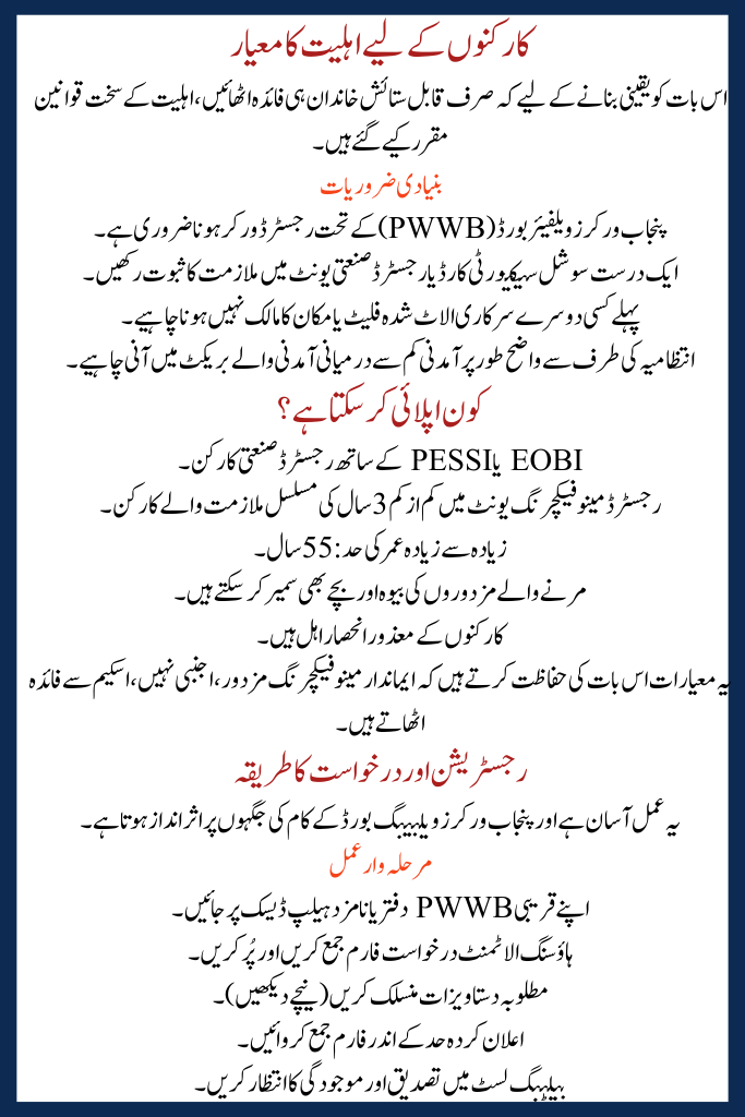• Must be a registered worker under Punjab Workers Welfare Board (PWWB).