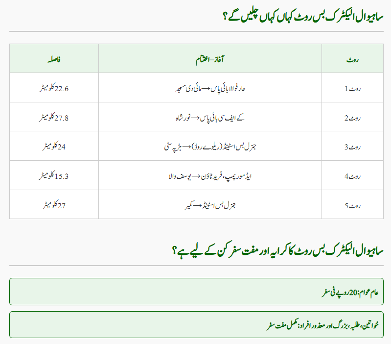 What Is the Fare for the Sahiwal Electric Bus Route?