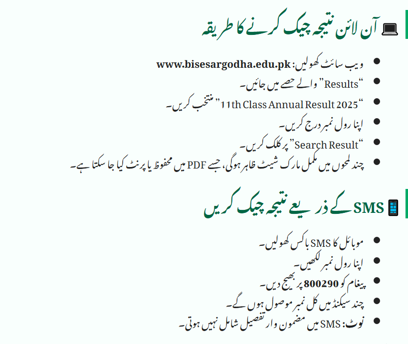 📱 How to Check Sargodha Board 11th Class Result 2026 by SMS?