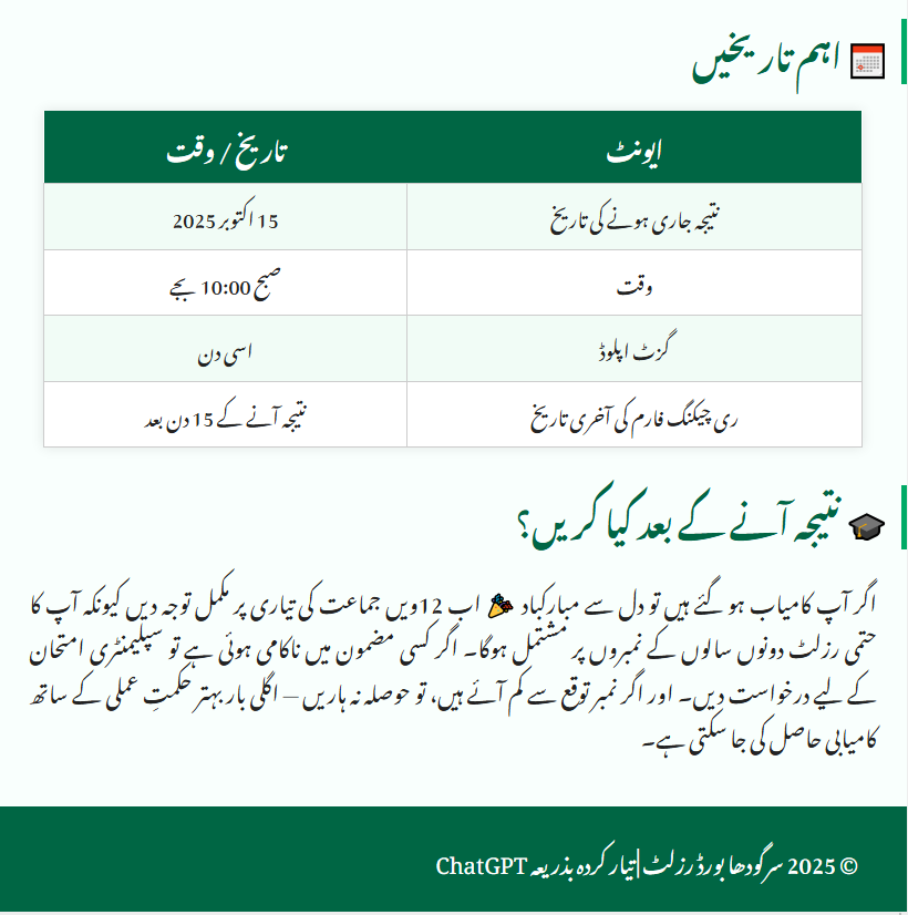 📅 Important Dates – Sargodha Board 1st Year Result 2026