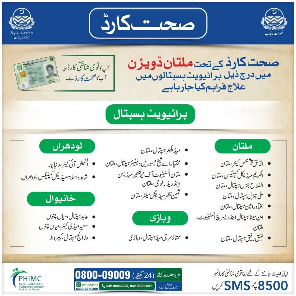 Here’s the breakdown for the four districts Sehat Card Now Available Across Multan Division: