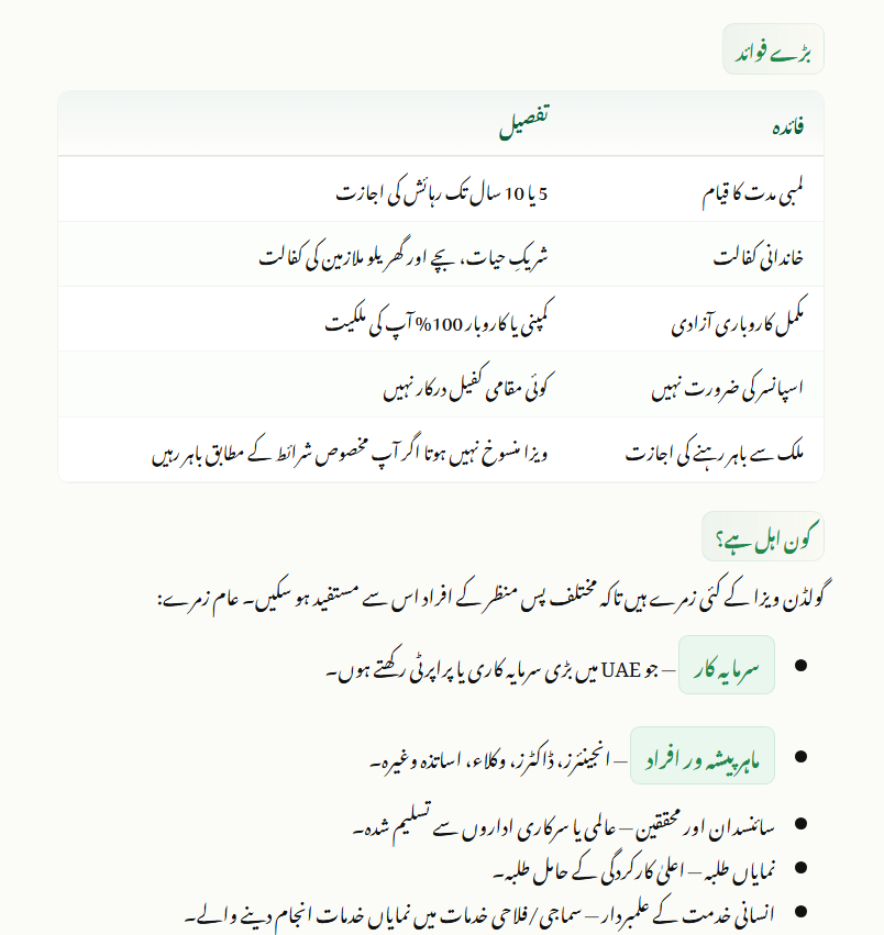 1. Investors: Individuals who own property or make significant investments in the UAE.
