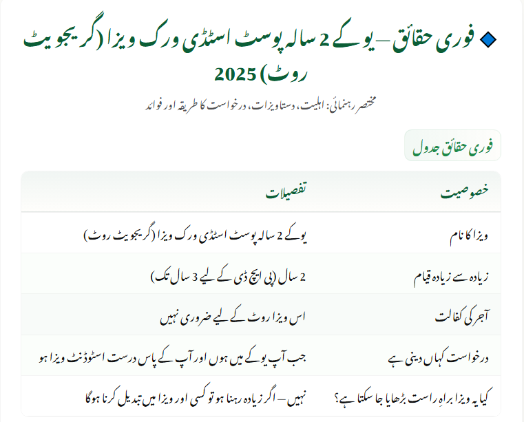 The UK 2-Year Post Study Work Visa (also known as the Graduate Route visa in the UK) lets international students stay on after finishing their degree to work or look for work. this option remains important for graduates who want to begin their careers in the UK.