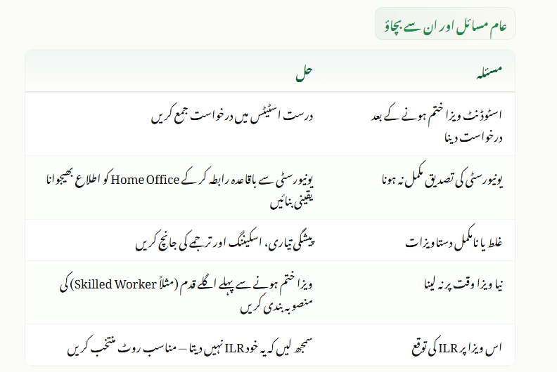 - Issue: Not switching to another visa in time → Fix: Plan ahead for next stage (Skilled Worker or other) before this visa ends.