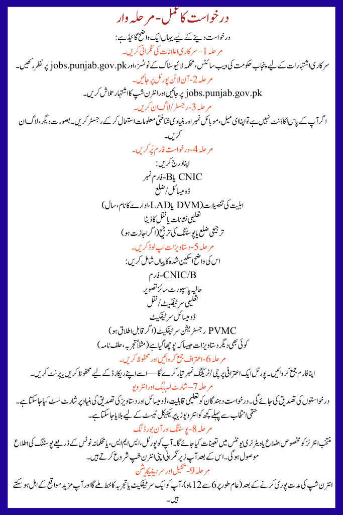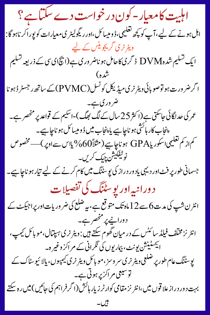 • The internship program will operate under the administrative oversight of the Livestock & Dairy Development Department of Punjab.